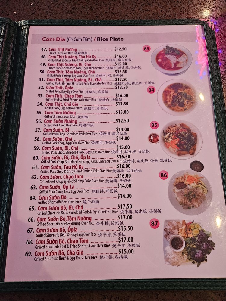 Introducing the menu at Pho King in Oakland, CA! This Vietnamese restaurant offers a wide range of options including Mì Quảng noodles, Bun Cha Ha Noi, and flavorful pho soups. Customers rave about the efficient service, clean environment, and generous portion sizes. The menu features traditional Vietnamese dishes like pho, vermicelli bowls, grilled pork rolls, and rice dishes. Standout items include XL pho tai, #8 pho, and the full spread appetizer. With options for vegan, vegetarian, and meat lovers alike, Pho King is a hidden gem for authentic Vietnamese cuisine. The restaurant offers gender-neutral restrooms, outdoor seating, and accepts various forms of payment including cryptocurrency. Experience bold flavors and attentive service at Pho King - a must-visit for Vietnamese food enthusiasts!